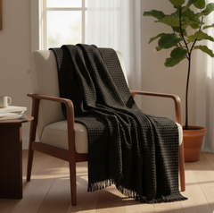 The Charlotte Waffle Throw – Black is a timeless blend of comfort, texture, and modern elegance. Crafted from 100% premium cotton, this honeycomb waffle throw offers exceptional softness, breathability, and durability. Its rich black tone adds a bold yet refined touch, making it a versatile accent for contemporary and classic interiors alike. Measuring 130 x 180 cm, it provides generous coverage for cozy lounging, layering on beds, or draping over sofas and chairs. Lightweight yet warm, this throw is perfect for year-round use, bringing both comfort and effortless style to your living space.